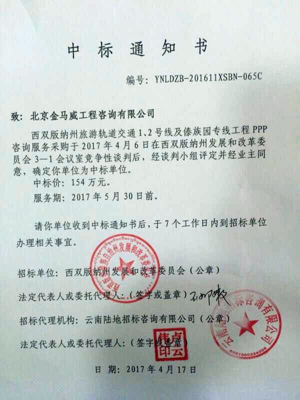 2017年4月,我公司成功中標(biāo)西雙版納州旅游軌道交通1、2號(hào)線及傣族園專線工程PPP咨詢服務(wù)采購(gòu)項(xiàng)目。
